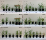 Фенотипни промени при пшеница и тритикале третирани с хербицид и подложени на засушаване или заблатяване. К – Контрола; Х – Хербицид; С – Суша; Х+С – Хербицид + Суша; З – Заблатяване; Х+З – Хербицид + Заблатяване.
